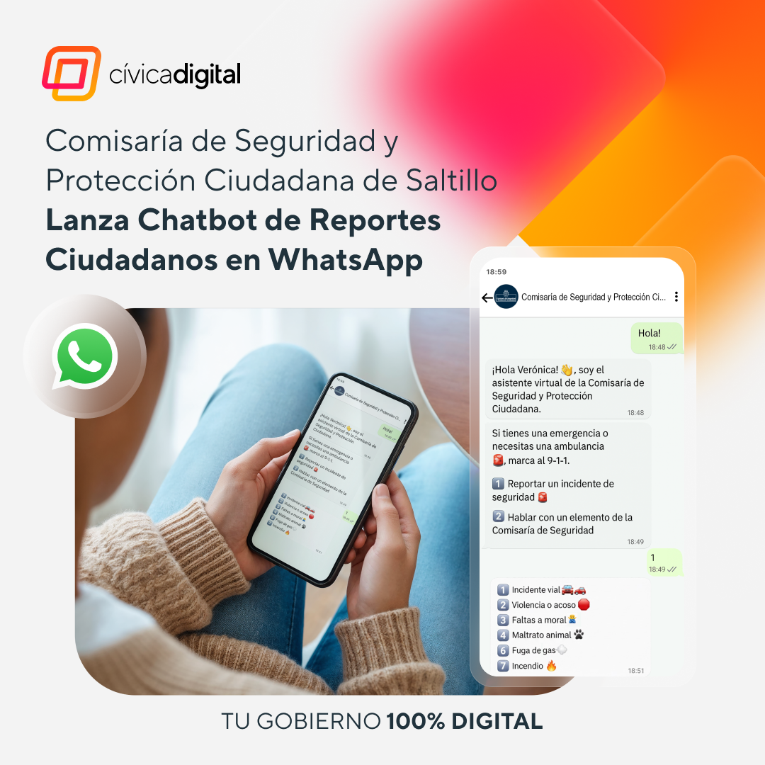 En colaboración con Cívica Digital, implementaron una solución de innovación gubernamental que permitió a los ciudadanos reportar incidentes de seguridad de manera inmediata, sencilla y disponible 24/7. Este proyecto demuestra cómo la tecnología conversacional puede acercar los servicios públicos a la ciudadanía, reducir tiempos de respuesta y generar datos valiosos para la toma de decisiones.